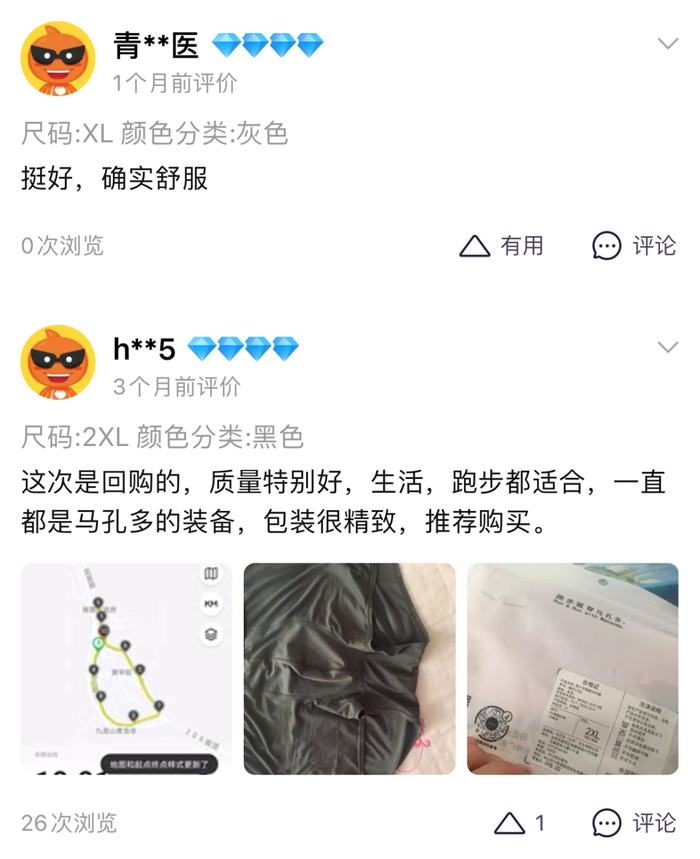 同时,我们又舍得割舍利润,让利给跑友,让他们获得超值的购物体验和穿着体验,看看他们的评论吧——