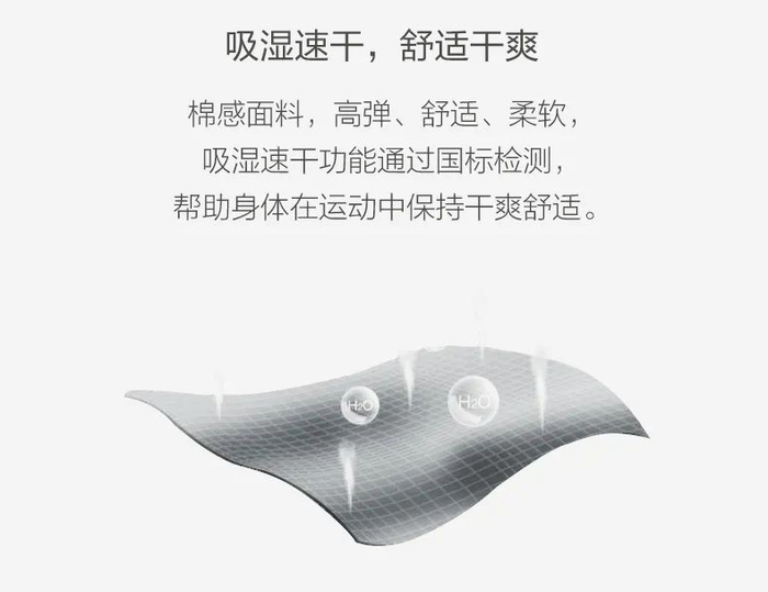 (1)棉感速干材质:面料的功能是秒干、透气的,但体感又是棉感的,亲肤感非常好;