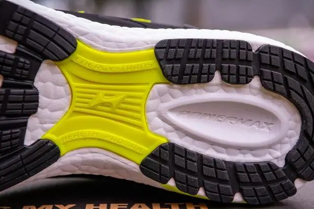 POWERMAX蓄能缓震系统则利用水滴状的能量凹槽,落地时吸能缓震,抬起时释放能量提供回弹,想必传统单纯的吸能材料更注重能量的重复利用,提升了跑者能量的经济性。