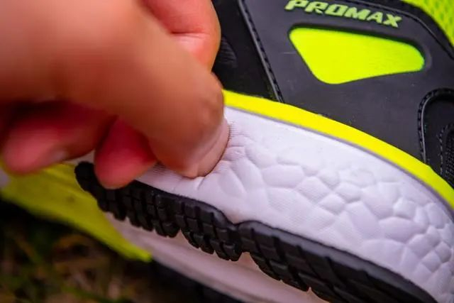 PROMAX能量传输系统利用中底的超高强度X型TPU,提供足够的抗扭转作用,让跑者每一步落地时尽量减少能量的损耗,提高能量传输效率和利用率。