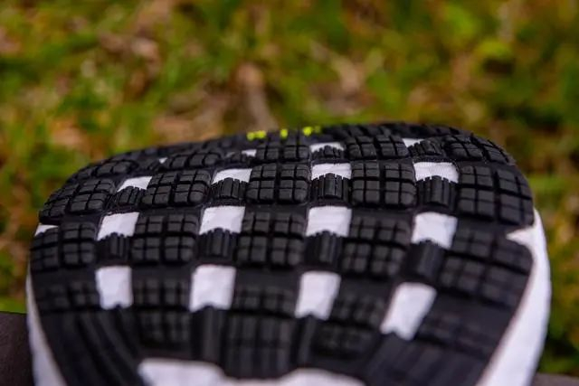 而这些切割的纹理,另一个作用就是在湿滑路面甚至积水路面上,提高大底的排水性能,使得橡胶可以直触地面,最大限度的防止打滑的风险。