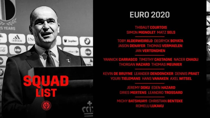 比利时主帅马丁内斯宣布2020欧洲杯参赛大名单