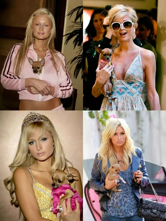 她头顶金发,打扮性感,深V是常有的戏码,吉娃娃是她出街的必备武器。