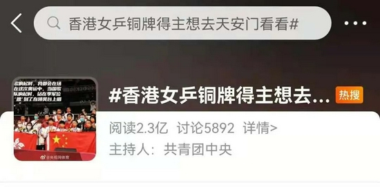 《参考消息》(Q):奥运会过后,大家对中国香港队、包括对你本人都非常关心,你的一句“想去天安门看一看”上了微博热搜,你有没有注意到网上的消息?