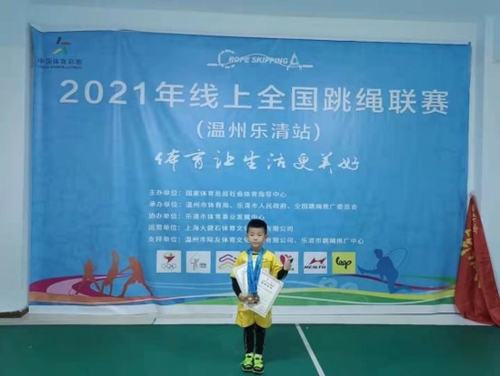 体育让生活更美好,运动让生命更精彩!在全国上下深入贯彻党的十九届六中全会精神之际,为进一步发挥体育在促进人的全面发展中的重要作用,加快推进全民健身与全民健康融合发展,在国家体育总局社会体育指导中心的指导下,由温州市体育局、乐清市人民政府、全国跳绳推广委员会承办,乐清市体育事业发展中心协办,上海大健石体育文化传播有限公司运营的2021年线上全国跳绳联赛(温州乐清站)于近期举办。