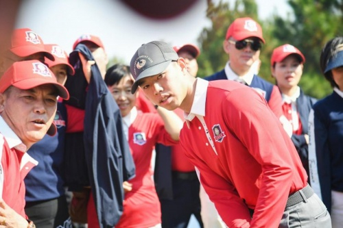 开球仪式后,极具趣味和挑战的推杆游戏,为赛事掀起了第一波高潮。中高协原顾问、广东省高协原主席许德立、广东省高协原高级顾问王守初、广东省高协副秘书长贾晓峰加入到红蓝两队当中,并且和两队的精英队员同场竞技,为公益而战。结果,红队和蓝队战成平手,两队均未能获得额外加分。随后,最佳球位比洞赛正式开始。由孙楠与朱时茂领衔的蓝、红两队在高球赛场上展开竞技,挥动球杆,将每一颗小白球转动成爱心。
