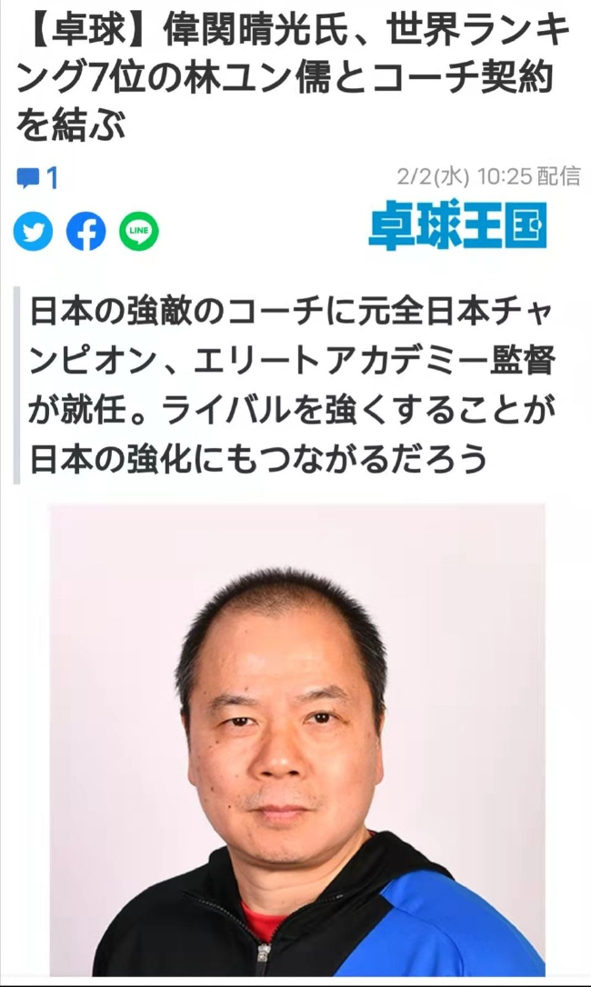 这次和林昀儒签约,日本方面较为紧张,认为伟关晴光曾今担任过日本乒乓精英学校的主教练,对日本较为熟悉。