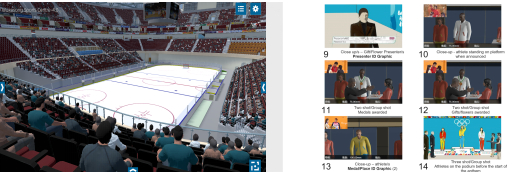 视伴科技与英特尔公司在媒体转播服务过程中,通过大规模场景建模关键技术,搭建首钢滑雪大跳台三维模型环境,并结合VSS系统内置的运动员运动仿真,方便地为转播镜头确定画面构成。例如,通过VSS系统确定的北京首钢滑雪大跳台裁判塔转播机位,完整地记录了谷爱凌的冬奥会“首秀”和夺冠过程,清晰地捕捉到她空中翻转动作的特写镜头和整体运动轨迹,使得导演团队在VSS系统中最初设计的效果与最终播出效果高度一致。