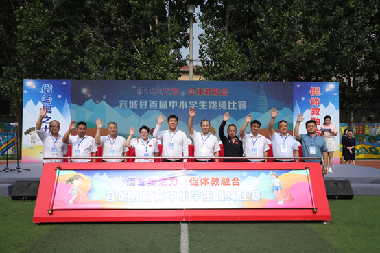 精彩表演后,随着容城县政府副县长赵磊宣布 “借冬奥之力 促体教融合”容城县首届中小学生跳绳比赛开幕,裁判长举枪发令,比赛正式开始。
