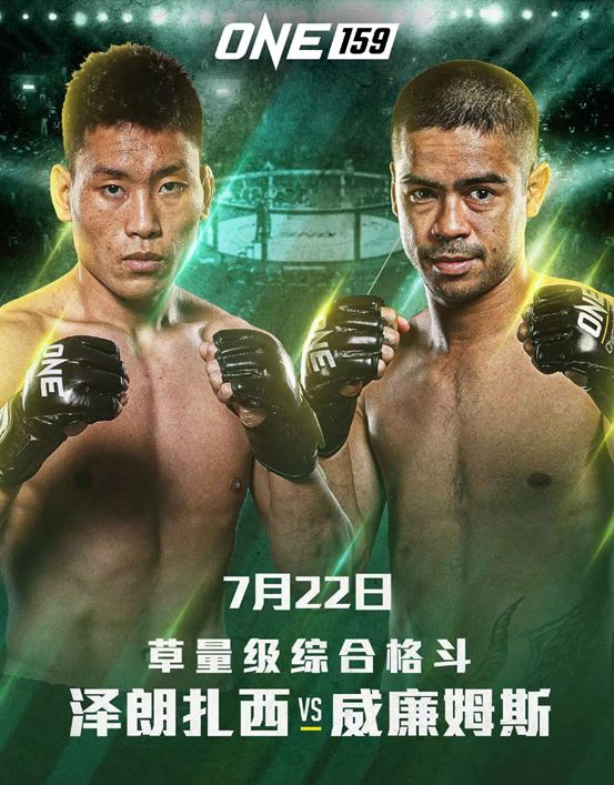 在ONE冠军赛选秀节目“飒!武力拳开”中,来自恩波格斗俱乐部的藏族选手“小钢炮”泽朗扎西以三战全胜的成绩夺得总冠军,并且获得价值百万的ONE冠军赛签约合同。终于,在7月22日的ONE 159中,泽朗扎西将迎来自己的国际赛场首秀,而他的对手将是泰拳与综合格斗名将丹尼尔·威廉姆斯(Danial Williams)。