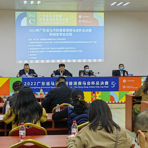 12月8日下午,2022年第五届广东省马术联赛“香港赛马会杯”总决赛新闻发布会在广州市召开。广东省马术协会常务副会长、广东省社会体育和训练竞赛中心主任蔡建祥,广东省马术协会常务副会长兼秘书长罗东斌,广东省黄村体育训练中心副主任李伟,广东省马术协会常务副会长谭永强,广东省马术协会常务副会长兼副秘书长陈广新,香港赛马会代表以及数十家媒体记者出席了本次发布会。