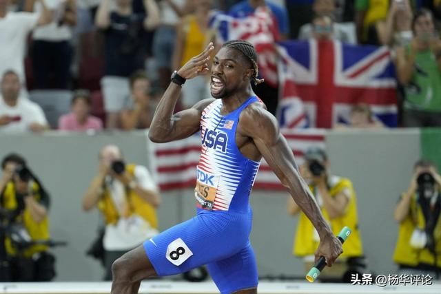 先是在100米副项的“业余爱好”里跑出9秒83今年世界最好成绩夺冠,接着200米主项以19秒52完成三连冠壮举,之后4乘100米接力最后一棒奠定胜局。太帅了,他的最后一棒绝对令人放心,把追赶者放到后视镜里。