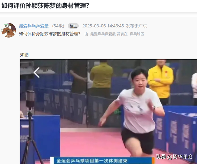 有网友不怀好意的建议大家讨论孙颖莎的身材,于是论坛就展开了花样吐槽模式,一个挖苦道:“既没身材也没管理,你让我如何评价一个不存在的东西”,另一个补刀:“孙颖莎这么矮还不控制体重,速度降了护不住台面,到时候被十几岁小将吊打就有意思了”,还有人拉仇恨:“陈梦的自律值得学习,敬佩她能自律保持好身材。至于那谁的,我不评价。”更过分的是有球迷调侃:“你不说我以为是举重队的!我只知道胖成这样肯定影响打球。”