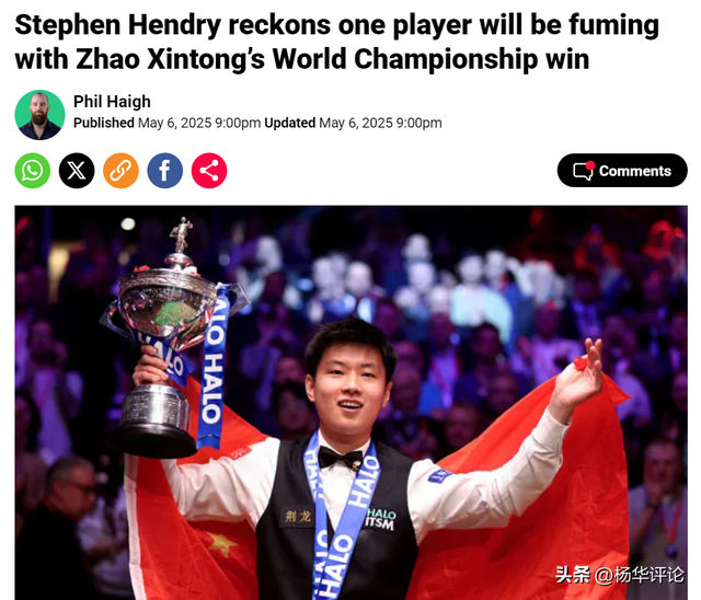 事实上,丁俊晖并没有亨德利想的那么狭隘,他通过社交媒体向赵心童发出祝福。但正如亨德利所担心的,一些喜欢捧一踩一的网友有意无意之间正在挑拨丁俊晖和赵心童的关系。赵心童夺冠的那一刻他破圈了,很多不懂斯诺克的网友开始为他歌功颂德,顺便踩丁俊晖一脚。全网只有体育专栏作家杨华评论在第一时间撰文,指出赵心童的综合成就暂时无法超过丁俊晖,呼吁不要贬低中国斯诺克扩荒者丁俊晖。
