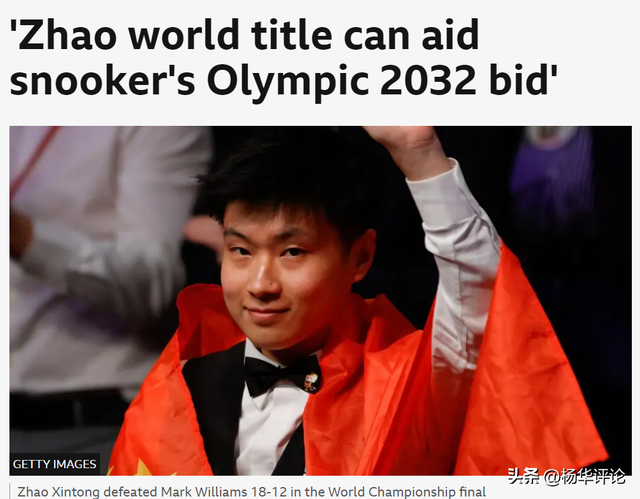 BBC之前曾报道,斯诺克在中国是一项国民性运动,其大众参与度可能比乒乓球还要高。中国有30万台球厅,有5000万人打台球,有1.5亿潜在球迷。丁俊晖的辉煌已经让斯诺克在中国保持较高热度,而赵心童促使这一切达到高潮。