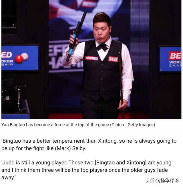 赵心童完成了禁赛后的华丽救赎,史上第一个00后三大赛冠军颜丙涛则要等到2027年恢复自由身。奥沙利文认为颜丙涛的韧性比赵心童好,所以他总是会像塞尔比那样折磨对手。火箭在三年前的一次谈话中预测特鲁姆普、赵心童、颜丙涛统治未来球坛,但25岁的颜丙涛如今正为自己的错误遭受应有的惩罚。
