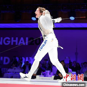 5月18日晚,2025年国际剑联花剑大奖赛(上海站)在广富林文化公园闭幕。现世界排名第二的意大利选手马尔蒂娜·法瓦雷托在上海站女单决赛中成功卫冕。美国选手李·基弗获得亚军,意大利选手玛蒂娜·巴蒂尼和阿莉安娜·埃里戈获得季军。图为意大利选手马尔蒂娜·法瓦雷托在决赛中。中新社记者 殷立勤 摄