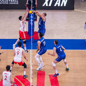 第一局比赛,俞元泰强攻得分,江川二直线,俞元泰自接自扣,季道帅拦网得分,两队开局比分交替上升,李咏臻发球破攻,季道帅反击得分,季道帅四号位小斜线,江川拦网得分,中国队9-8领先,后面出现起伏,叫暂停,李咏臻快球打手出界。