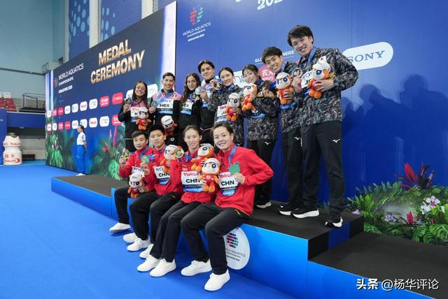 陈芋汐领军的中国跳水队在世锦赛混合团体赛以466.25分毫无悬念的夺冠,这是梦之队本届世锦赛首金,也是陈芋汐首次在团体赛折桂。上届世锦赛中国跳水队没有参加这个非奥项目,而本届世锦赛祭出陈芋汐、陈艺文、程子龙、曹缘的强阵,也是有战略考量的。