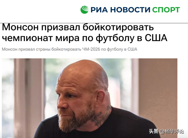 美裔俄籍综合格斗巨星“雪人”杰夫·蒙森日前接受俄新社采访,公开呼吁各国抵制2026年美加墨世界杯,直言赛事东道主美国的对委内瑞拉的侵略行径不配举办这项全球顶级体育盛会。
