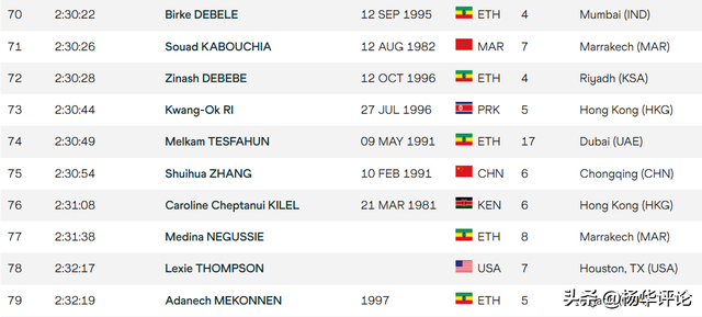 2小时30分54秒的成绩,在本赛季全球女子马拉松选手中拥有极强竞争力。截至目前,该成绩可以排在世界第75位,稳稳跻身本年度全球最快百人大名单。能拥有这样的排名水准,足以说明张水华的竞技实力已经迈入新的层级。
