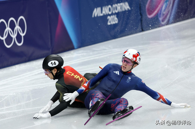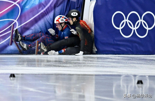 意外在最不该出现的时刻降临。英国选手特雷西动作失控,凶狠冲撞刘少昂,两人瞬间摔出赛道。紧跟其后的孙龙毫无躲闪余地,被连锁摔倒的身体带翻,冰刀与冰面剧烈摩擦,刺耳声响撕碎赛场平静。一次犯规,直接摧毁中国队精心筹备的冲金布局。
