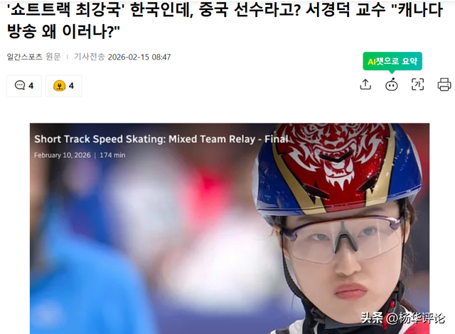 短道速滑是韩国的传统优势项目。截至2022年北京冬奥会,韩国在该项目累计斩获53枚奥运奖牌,位列世界第一,中国队37枚奖牌位列第二。作为短道奖牌大国,选手被频繁标错国籍,更让韩国觉得难以接受。
