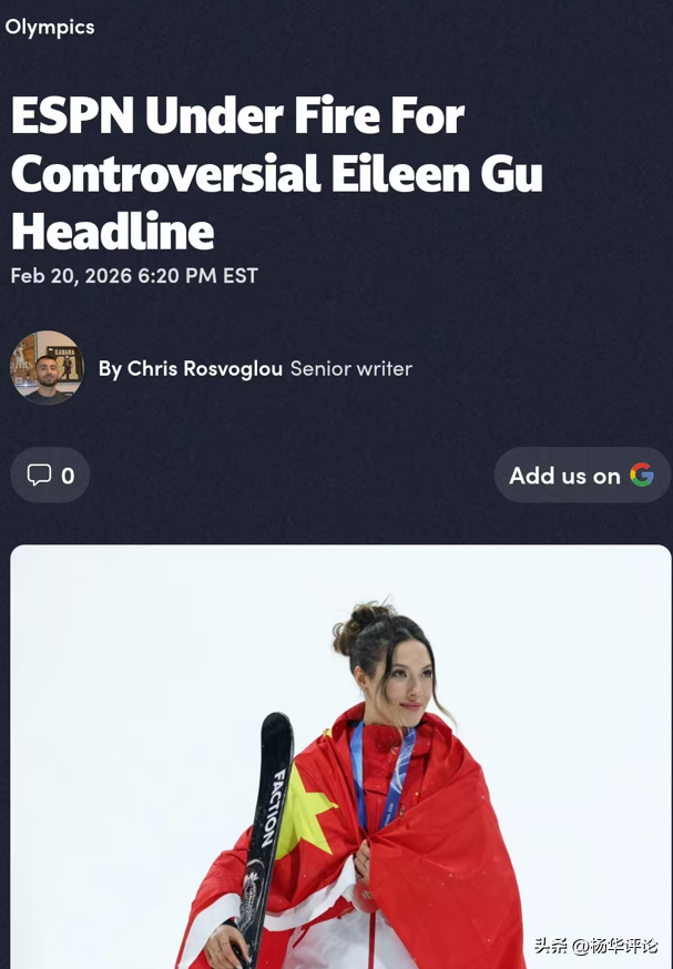 ESPN资深作家发表奇谈怪论:谷爱凌到中国赚钱是标准的美国式选择