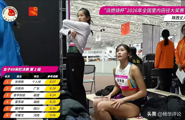 2026年全国室内田径大奖赛西安站女子60米栏决赛,中国台北选手张博雅以8秒07的成绩夺冠并刷新个人最佳,位列今年亚洲第二好成绩,亚洲榜首为日本名将福布真子的8秒02。吴艳妮、林雨薇两大名将缺阵,这位新科亚洲室内锦标赛冠军,在国内顶尖赛场续写强势。