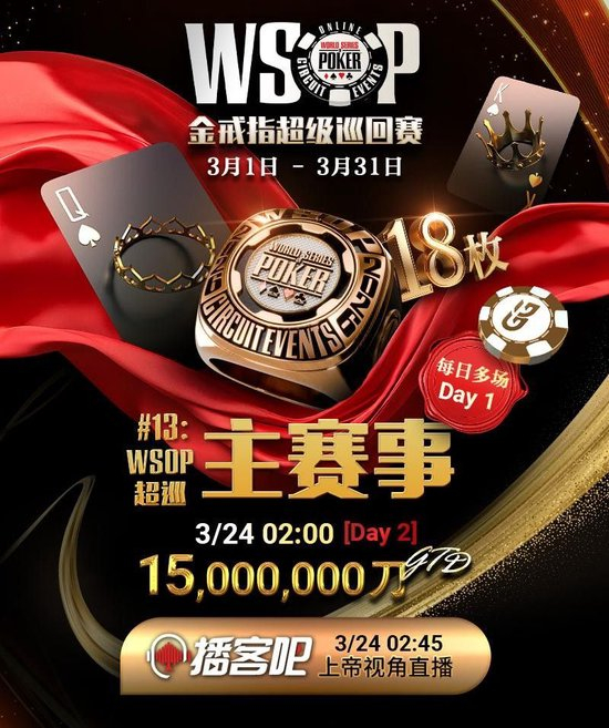 就在大家为Deeb的精彩表现热血沸腾,对2026 WSOP年度玩家之争满怀期待之时,现在正有一场激动人心的WSOP金戒指线上赛火热进行中!这是一场属于所有扑克爱好者的盛宴,无论你是初出茅庐的新手,还是经验丰富的老将,都能在这场线上赛中找到属于自己的舞台,更多WSOP消息请看微博@WSOP官方频道