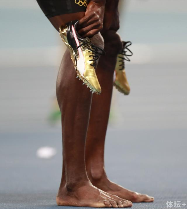 赵本山和范伟小品的真实版吗?确实有点像。由于措辞上的含糊,或许有人会被误导认为博尔特是穿着这鞋在里约奥运会拿下三冠,其实不然,众所周知博尔特的主流鞋有一个特定称谓:金色战靴。事实也是如此,他穿着金色跑鞋拿到100米和4x100米冠军。