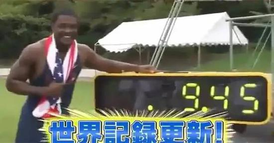 令人印象最深的一个“纪录”,当属美国飞人加特林在日本跑出的9.45秒。不过,这是一个电视节目在作秀。起跑器后安装了一个鼓风机,能吹出20英里/小时的风,相当于将近9米/秒的顺风。