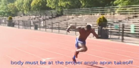 连带着因为后蹬技术的,是腾空技术。腾空的距离受到腾起角度腾起的初速度和摆动腿的屈膝角三个因素的制约。