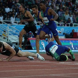 男子110米栏,俄罗斯选手舒本科夫后来居上以13秒12的今年个人最好成绩获得冠军。原本领先的牙买加名将迈克莱奥德最后一个栏被绊了一下,不但失去领先位置,冲线前摔倒还把舒本科夫也一并带翻在地,好在舒本科夫惯性顺利冲线,两人也无大碍。迈克莱奥德今年最好成绩也是13秒12,和舒本科夫并列世界第三。男子110米栏今年世界最好成绩是美国选手霍洛威在6月7日跑出的12秒98。