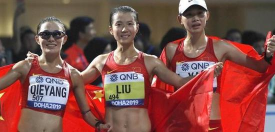 多哈世锦赛的舞台上,中国健儿多点开花,全线突破,用顽强的拼搏和优异的成绩展现了中国田径的风采。由刘虹、梁瑞领军的中国竞走队发挥优异,获得了女子20公里、50公里竞走两个项目总共6枚奖牌中的5枚,其中刘虹、切阳什姐和杨柳静包揽女子20公里竞走的金银铜牌,3面五星红旗在哈利法国际体育场内同时升起,这是田径世锦赛女子竞走项目历史上首次由来自同一国家的3名选手站上领奖台。在女子50公里竞走项目中,梁瑞不负众望获得冠军,收获了中国队在该项目中的首枚世锦赛金牌,李毛措取得银牌。