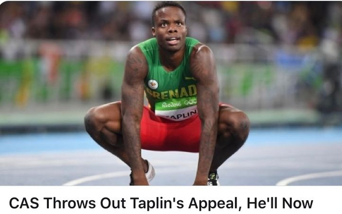 2020年2月底,就塔普林提起的上诉,国际体育仲裁法庭邀请到法律顾问、格林纳达奥委会相关人员、证人等,举行了专门听证会。仲裁员认为,运动员提供的证据并不具有说服力,塔普林确实在逃避兴奋剂检查,最终认定加勒比海地区反兴奋剂组织的处罚有效,塔普林的禁赛日期从2019年9月25日正式开始,一直持续至2023年9月。