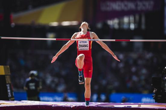 ▲2017田径世锦赛资格赛,张国伟展现“白鹤亮翅”(图据IC Photo)
