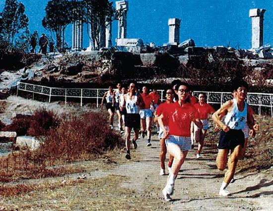 八十年代清华学生在圆明园跑步