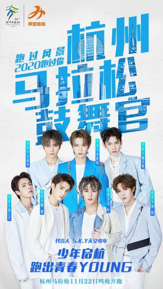 S.K.Y天空少年作为杭马首个代言团体,将赛事的传播力和影响力由跑圈、体育圈,渗入到95后、00后等新生代圈层,以积极正能量的“鼓舞力”,打通泛人群与赛事的情感连结,令更多年轻人关注、参与到这项运动中来。