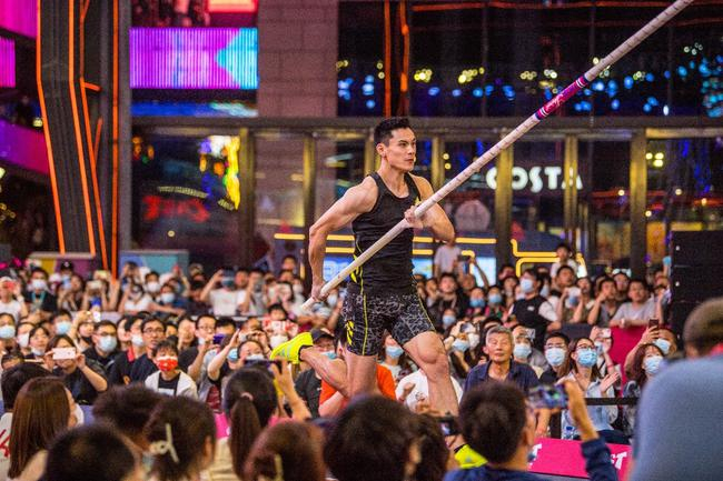 6月5日,中国田径街头巡回赛在北京海淀区华熙LIVE五棵松中心广场迎来2021赛季第三站,此次共10位国内乃至亚洲的顶尖运动员以撑竿跳高之名点亮京西之夜。