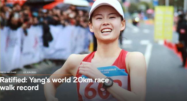 世界田联官方网站今天发布世界纪录确认信息,中国选手杨家玉在2021年3月20日进行的奥运达标赛女子20公里竞走决赛里,走出的1小时23分49秒的成绩,被世界田联正式批准为该项目世界纪录。