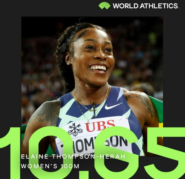 该项目历史前十位成绩,已经有四个成绩归属汤普森,分别是她在尤金站跑出的10秒54,排名历史第二;在东京奥运会决赛上跑出的冠军成绩10秒61,排名历史第四;在洛桑站跑出的10秒64,排名历史第八,以及这次苏黎世站跑出的10秒65,排名历史第十。