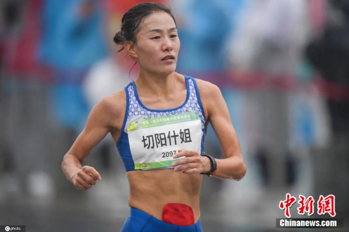 2021年9月24日,陕西西安,第十四届全运会田径女子20公里竞走赛况。切阳什姐