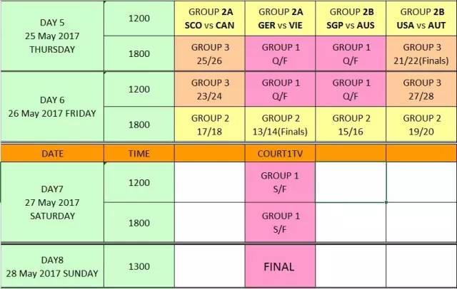2017道达尔BWF苏迪曼杯比赛时间安排
