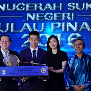 (槟城12日讯)拿督李宗伟今晚获得槟州政府颁发“终身成就奖”,肯定他在羽坛的卓越贡献。