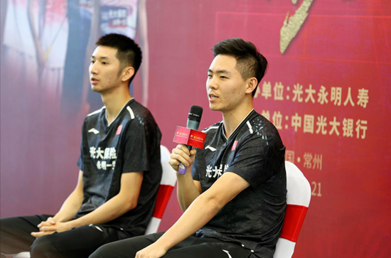 9月21日,在光大永明保险主办的羽毛球世界冠军见面会上,就有球迷发现了端倪——在见面会上,韩呈恺因为腰伤,不能久坐,时不时就要站起来活动一下,让现场球迷十分心疼。作为韩呈恺的搭档,周昊东也极力建议球迷运动时要做好自我保护,打球前充分热身、打球后一定要充分放松,同时他也建议球迷要买一份保险,应对运动中出现的突发意外伤病。
