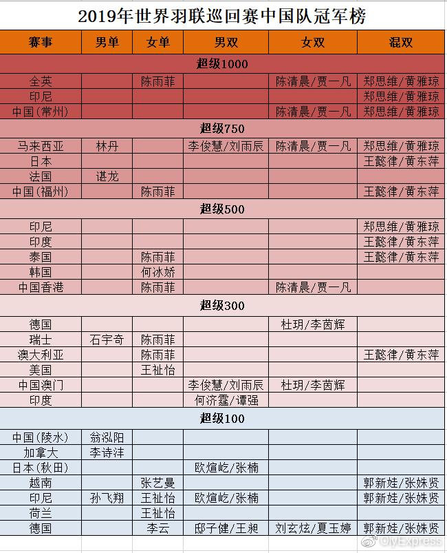 巡回赛国羽44冠陈雨菲6冠 混双强势男单男双式微