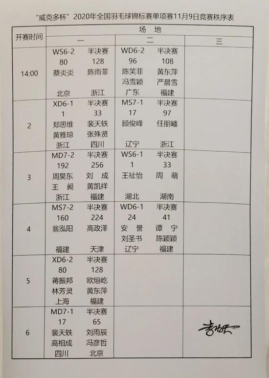 今天下午两点将展开各单项半决赛的争夺。半决赛和决赛均采取7局4胜,11分每球得分制,14平后,先得15分的一方胜该局。