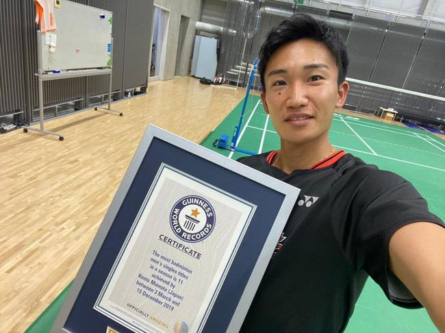 北京时间11月18日,羽毛球男单世界第一桃田贤斗在个人社交平台上晒出了吉尼斯记录认证证书——“羽毛球男单项目单赛季冠军数量最多者——桃田贤斗在2019年3月至12月15日之间夺得了11个冠军。”