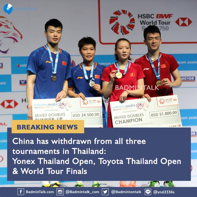 考虑到国内外疫情发展状况,以及赛事举办地泰国疫情的再度爆发,中国羽毛球协会经过谨慎研判决定退出2021年1月在泰国举办的包括总决赛在内的三站赛事。